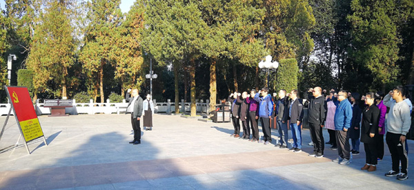 活动中,全体党员来到金寨县红军广场,在革命烈士纪念塔前,敬献花篮、重温入党誓词。随后瞻仰了洪学智将军纪念碑、革命烈士墓园,参观了金寨县红军纪念堂、金寨县革命博物馆。