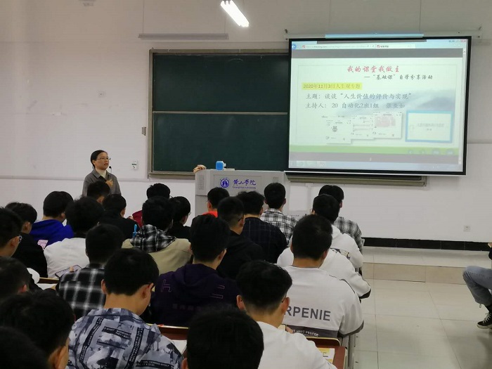 11月3日下午,孙海霞副教授在文端楼2311教室开讲教学示范课,孙海霞老师采用线上与线下相结合的翻转课堂教学模式,开辟“我的课堂我做主”环节,由大学生主持话题讨论,从上世纪80年代“大学生张华冒险救老农”事件开始说起,围绕“人生价值的评价方法”问题展开,之后,进入教师点评、提升和总结环节。孙海霞老师运用智慧教学工具,以生生互动和师生互动等,凸显学生为中心的思政课堂教学风貌。