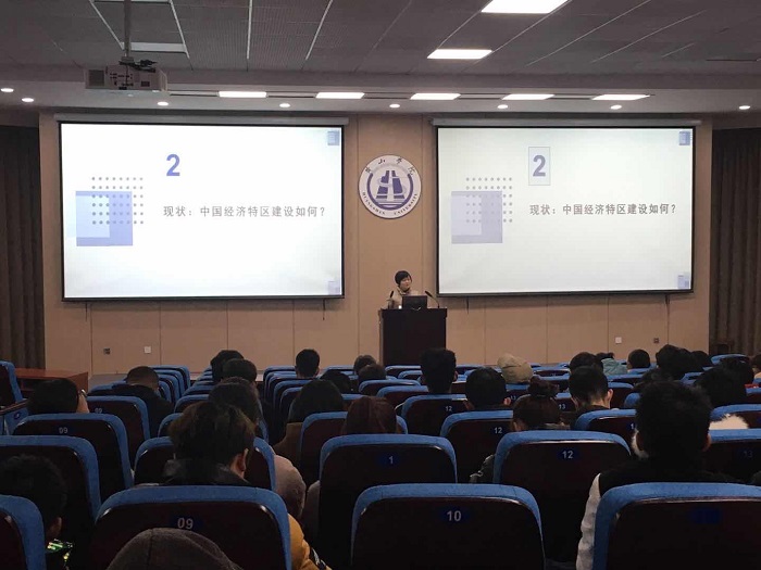 12月16日下午,行知讲坛第113讲在文端楼一楼报告厅举行。必赢线路检测3003no1副教授陈玲作题为《勇立潮头:中国经济特区40年回顾与展望》的报告。艺术学院、旅游学院师生近200人参加了报告会。报告会由该院教工党支部书记郑六一主持。