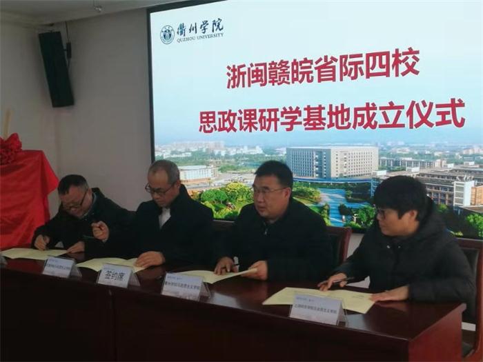 12月19-20日,必赢线路检测3003no1院长曾小保、思想道德修养与法律基础教研室主任朱哲恒、中国近现代史纲要教研室主任吴云峰等赴衢州参加浙闽赣皖省际四校思政课研学基地成立活动。