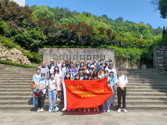 社团在指导老师刘芳正带领下考察了泾县皖南事变烈士陵园和云岭新四军军部大会堂旧址陈列馆、中共中央东南局旧址等爱国主义教育基地。在庄严肃穆的皖南事变烈士陵园内,大家认真听取讲解员的讲解,详细了解新四军发展壮大、英勇抗日的光辉历程,大家怀着崇敬的心情向革命先烈敬献花圈并鞠躬默哀,深切悼念缅怀革命先烈,追忆他们的丰功伟绩。