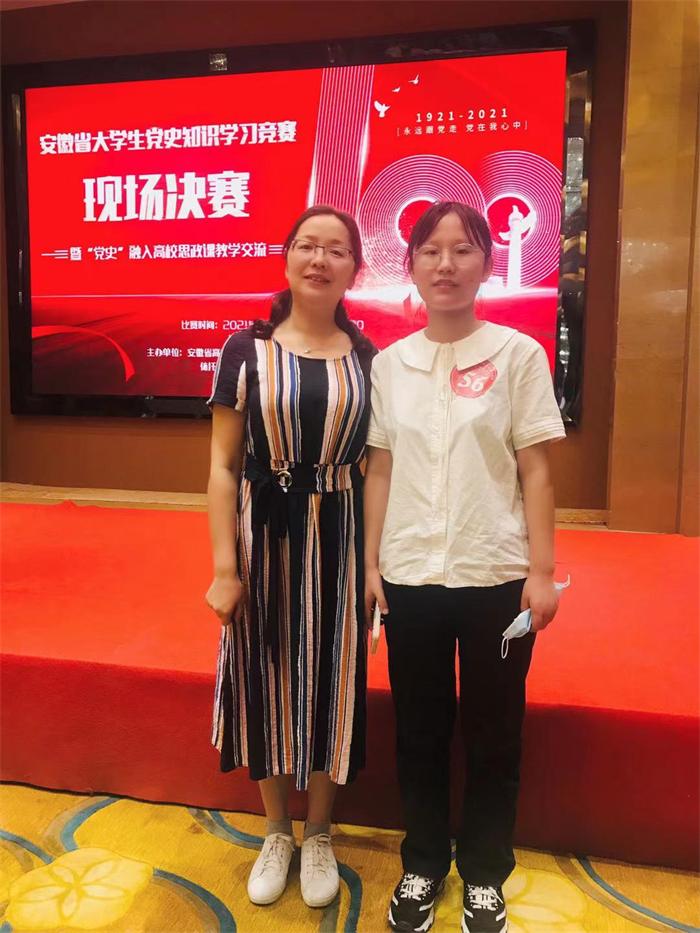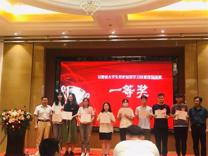 安徽省大学生党史知识竞争分为初赛、复赛和决赛三个阶段,竞赛围绕党章、党的十九大报告、习近平《论中国共产党历史》《中国共产党简史》等主要内容展开。决赛采取积分累计赛模式,采用多元化的赛制,共包括5个环节:破冰环节、突围环节、复活环节、冲刺环节、夺冠环节。决赛现场气氛紧张而热烈,在指导教师必赢线路检测3003no1吴霞老师的带领下,陈沁同学沉着应对,以扎实的党史知识理论功底和积极昂扬的竞赛精神,展示了新时代大学生的风采。