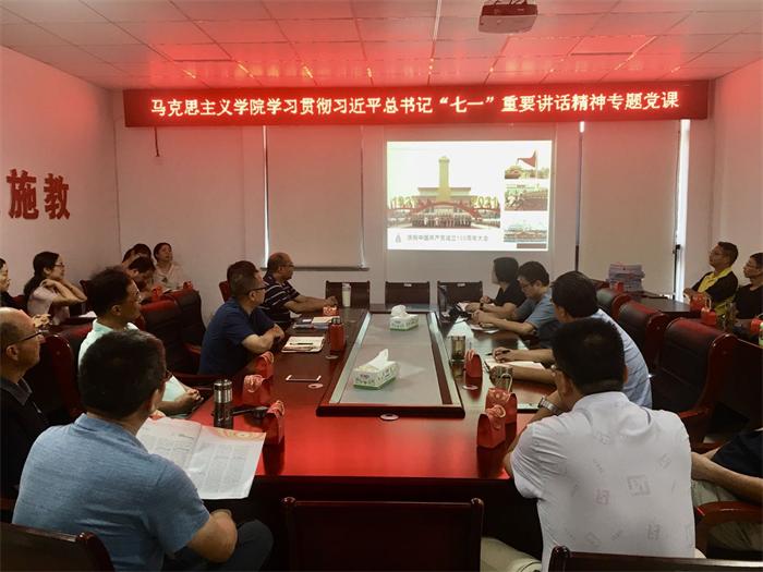 9月15日下午,必赢线路检测3003no1在该院会议室开展学习贯彻习近平总书记“七一”重要讲话精神专题党课学习研讨。该院毛泽东思想和中国特色社会主义理论体系概论教研室主任陈玲副教授作题为《学习贯彻习近平总书记“七一”重要讲话精神》党课报告。该院全体教师参加了党课学习。学习研讨会由该院党总支副书记(主持工作)刘春安主持。