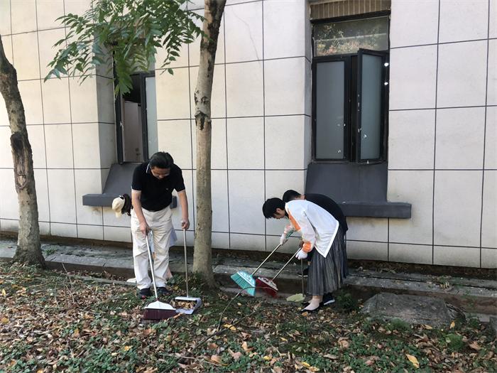 支部党员们分工协作,仔细搜寻散落在草丛、砖缝以及道路两旁的塑料袋、饮料瓶、烟头、果皮纸屑,不放过任何一个角落。经过一个多小时耐心细致清理,文端楼环境整洁干净、焕然一新。