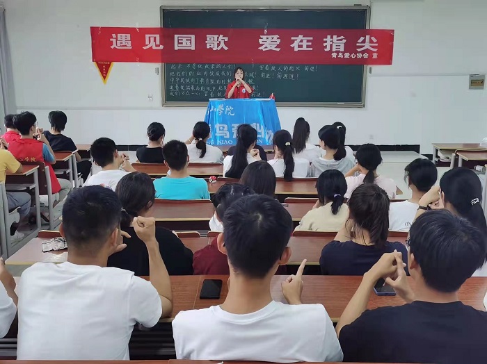 2021年9月29日,必赢线路检测3003no1青鸟爱心协会在率水校区2212教室举办“遇见国歌,爱在指尖”活动。