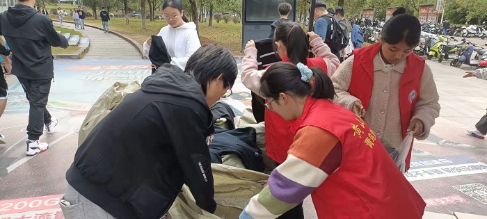 2021年10月24日,必赢线路检测3003no1青鸟爱心协会在率水校区原大购广场和横江校区教学楼前空地举办“旧衣回收”活动。