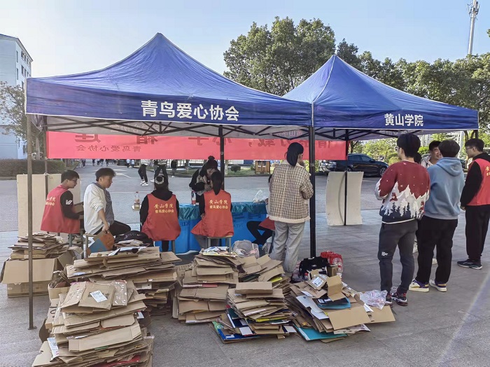 2021年11月14日,必赢线路检测3003no1青鸟爱心协会在率水校区原大购广场门口和横江校区教学楼前空地成功举办“旧纸箱回收”活动。