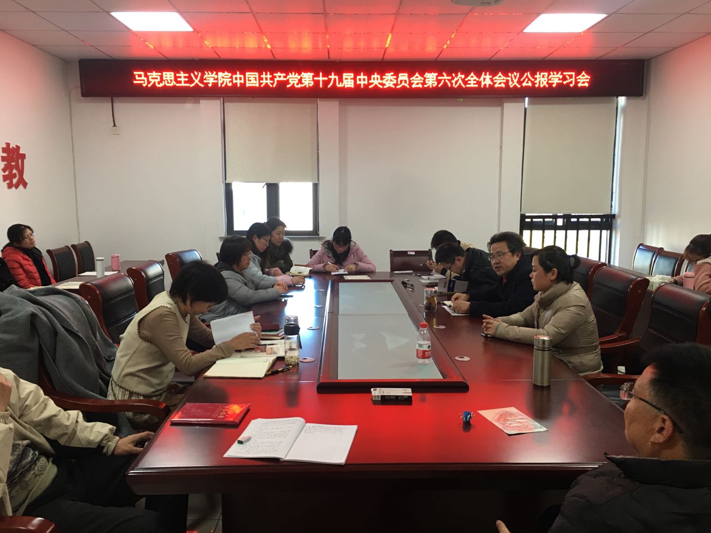 11月25日下午,必赢线路检测3003no1在该院会议室召开《中国共产党第十九届中央委员会第六次全体会议公报》(以下简称《公报》)学习会。全体教师参加会议。会议由该院党总支副书记刘春安主持。