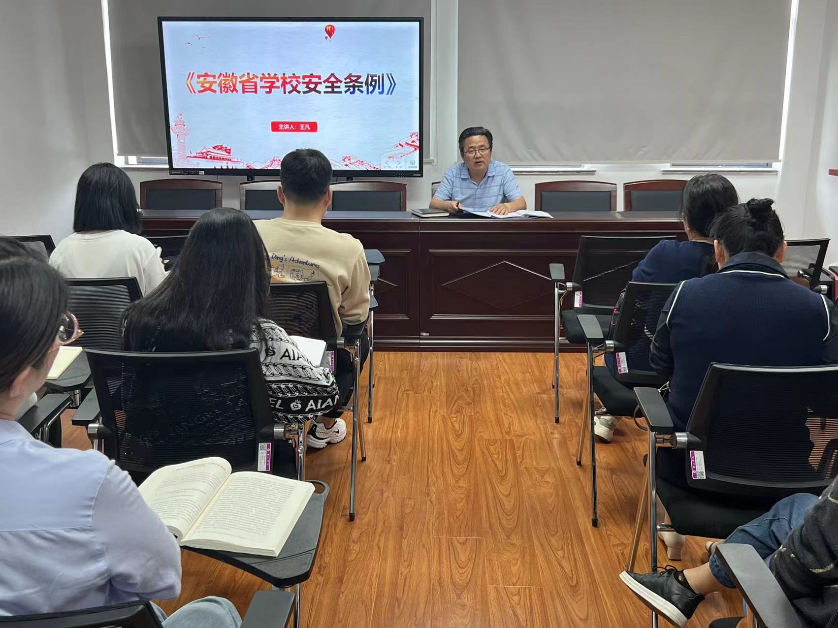 4月19日下午,必赢线路检测3003no1在该院会议室举办学习贯彻《安徽省学校安全条例》(以下简称《条例》)专题辅导讲座。该院全体教师参加会议。会议由该院党总支书记刘春安主持。
