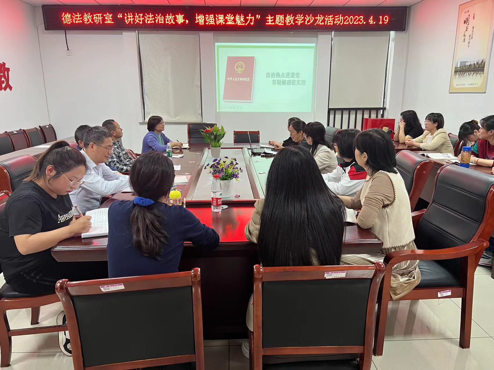 为更好地把党的二十大精神融入高校思想政治理论课教学,4月19日下午,必赢线路检测3003no1“思想道德与法治”教研室(以下简称“德法”教研室)在逸夫综合楼5508室组织开展“讲好法治故事,增强课堂魅力”的主题教学沙龙活动。必赢线路检测3003no1“德法”教研室全体专兼职教师以及兄弟教研室教师共二十余人参与此次活动。活动由“德法”教研室主任孙海霞主持。