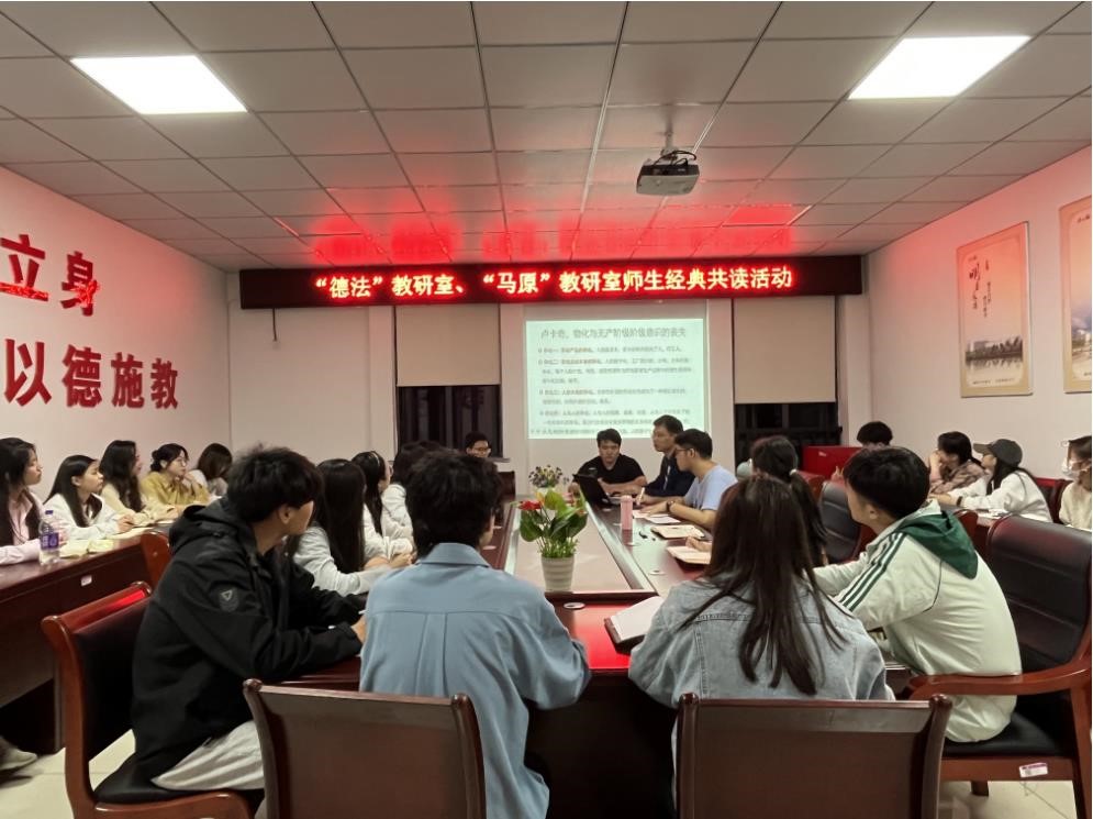 为满足大学生个性化和差异性学习需求,进一步提升思政课教学实效性,5月12日晚,必赢线路检测3003no1“德法”教研室联合“马原”教研室在逸夫综合楼5508室开展师生经典共读活动。活动由青年教师高崇担任主讲人,青年教师罗龙熙、德法教研室主任孙海霞担任点评嘉宾,22级旅游管理专业莫子豪担任主持人,来自全校不同专业共30余名同学参加此次活动。