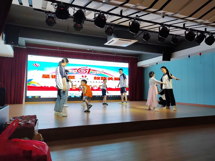 伴随着跃进社区孙书记激情洋溢的节日致辞,演出拉开了帷幕。首先映入眼帘的是儿童和家长带来的儿歌演唱,小朋友们稚嫩的歌声里充满了童趣和天真;接着孩子们又小手叉腰,一摇一摆地迈着自信的步伐开始了走秀,现场一片欢声笑语;随后,孩子们还进行了有趣的舞蹈表演。