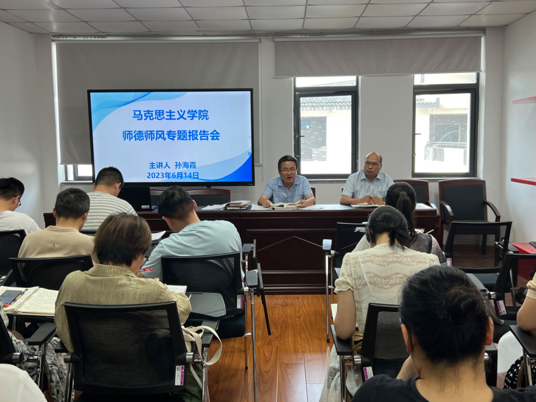报告会后,该院教师就师德师风建设开展交流研讨。教师代表宛洁表示,作为一名青年思政课教师,首先,要加强学习,必须不断加强教育教学的理论知识学习,吸收新的教育思想、教育理念、教育模式、教育方法和教育途径。其次,要爱岗敬业、教书育人,要热爱教育,热爱自己所从事的工作,热爱我们的学校和教育对象,设计教学活动时应充分考虑学生学习特点。此外,应当构建和谐的师生关系,坚持以学生为中心,对学生严格要求,耐心教导,与学生们教学相长。