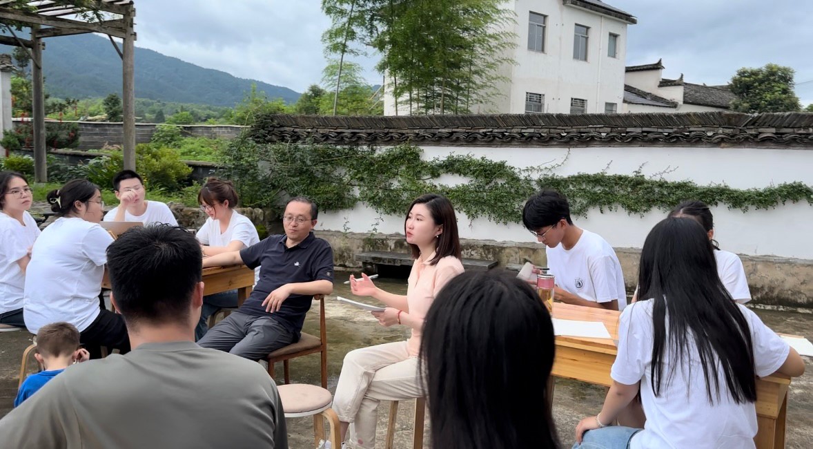 6月25日中午,必赢线路检测3003no1第八期“行知课堂”南屏村团队的4名指导教师和18名学员抵达黟县南屏村,并与南屏村村两委成员举办调研座谈会。会上,南屏村党总支书记程露向学员们介绍南屏村的村情、村貌、产业发展情况及未来发展方向。双方还就南屏村集体经济增收、徽派古建保护利用、文创产品设计等方面展开交流研讨,“你提问来我作答”,现场气氛十分热烈。