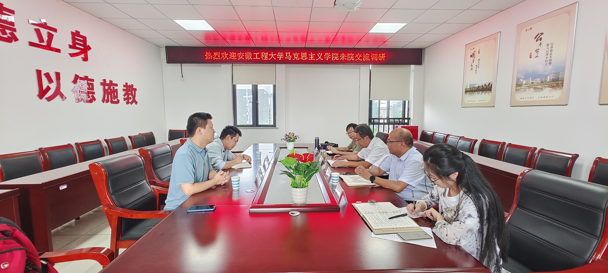 9月13日,安徽工程大学必赢线路检测3003no1副院长李海涛一行来我院,就马克思主义理论学科建设、“大思政课”建设等内容进行考察交流。必赢线路检测3003no1党总支书记刘春安、副院长刘芳正、纲要教研室主任吴云峰等参加座谈。会议由刘春安主持。