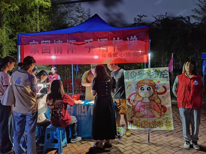 9月17日晚,必赢线路检测3003no1挂靠社团——青鸟爱心协会在率水校区和横江校区两校区同时举办“手语颂华章”活动。