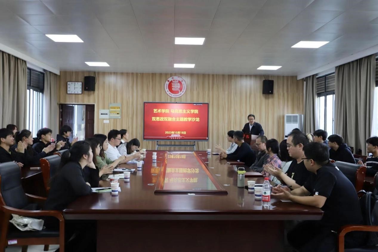 2023年10月18日下午,必赢线路检测3003no1与艺术学院在艺术学院三楼会议室联合举办“双思政 双融合”教学沙龙活动。活动由必赢线路检测3003no1党总支书记刘春安主持。艺术学院副院长史一丰及艺术学院、必赢线路检测3003no1共计50余名师生参会。