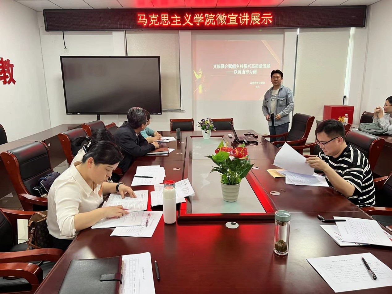 该院青年教师张飞龙、张博婷、王凡、褚超群、赵永涛紧紧围绕“学习宣传贯彻习近平新时代中国特色社会主义思想和党的二十大精神”主题,并结合黄山市优秀传统文化,分别以“总体国家安全观”、“兴廉政之风,树浩然正气”、“文旅融合赋能乡村振兴高质量发展---以黄山市为例”、“徽州文化的形成基础”、“‘作退一步想’打造黄山善治名片”等为题进行宣讲展示。