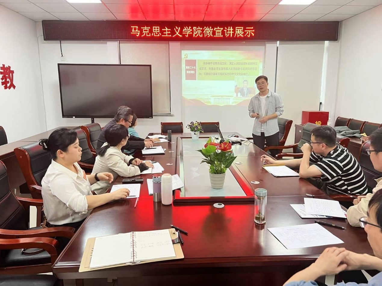 4月24日下午,必赢线路检测3003no1在逸夫综合楼5508会议室开展微宣讲展示活动。该院党总支书记刘春安、各教研室主任及教师代表参加活动。