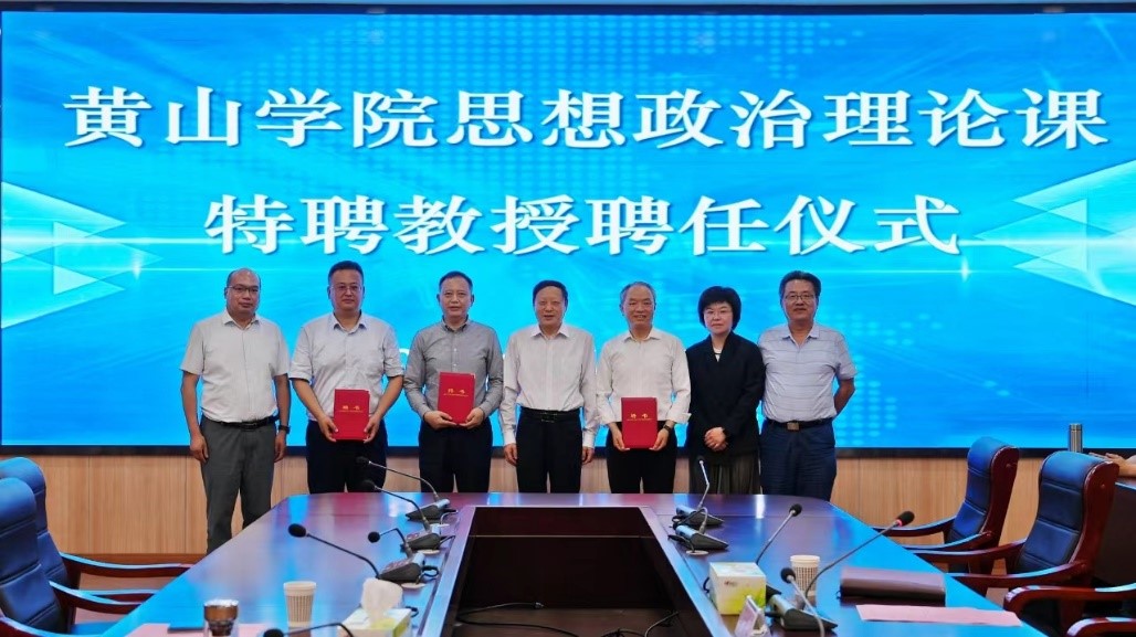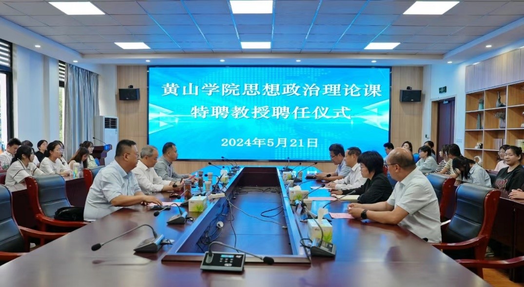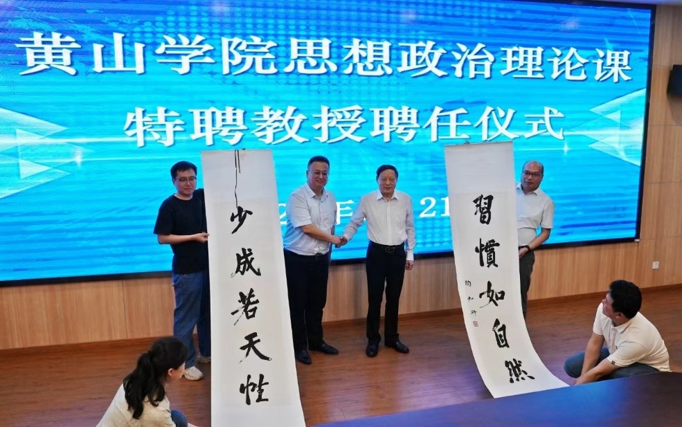 5月21日下午,必赢线路检测3003no1思想政治理论课特聘教授聘任仪式在率水校区文汇楼306会议室隆重举行。校党委书记李铁范,人事处负责人,必赢线路检测3003no1领导班子成员及师生代表,黄山市社科联党组书记、主席汪明洁,黄山市档案馆馆长汪朝晖,安徽中国徽州文化博物馆馆长、研究馆员姚昱波参加会议。会议由必赢线路检测3003no1党总支书记刘春安主持。