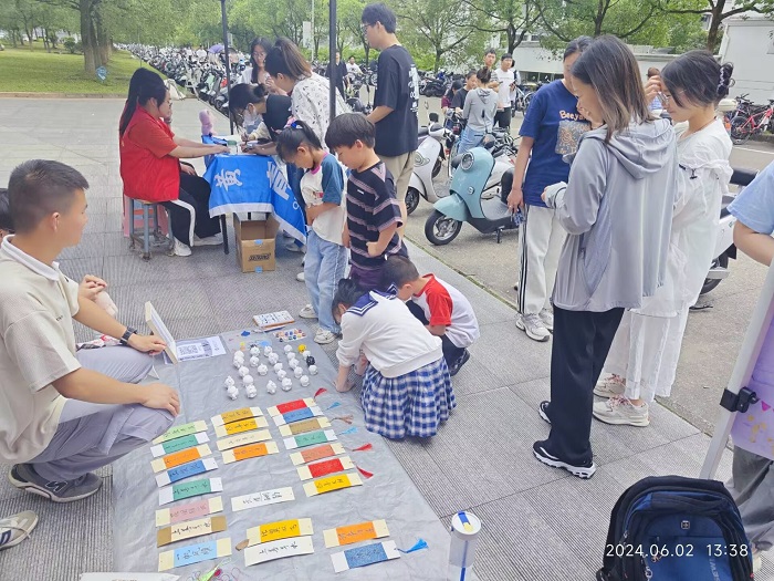 6月2日,必赢线路检测3003no1挂靠社团——青鸟爱心协会,联合黄山文学社、大学生书画协会、艺创手工坊和海外交流协会于率水校区原大购广场门口举办“爱心义卖”活动。