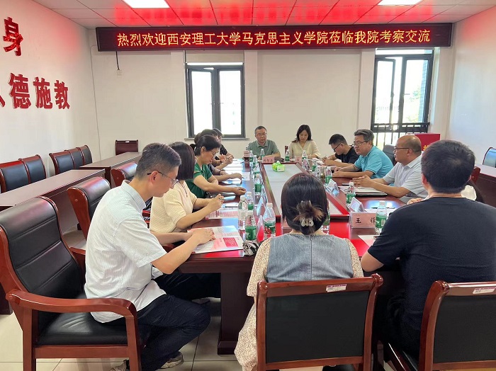 7月4日,西安理工大学必赢线路检测3003no1副院长蒙冰峰一行10人来我院考察交流。我院党总支书记刘春安、副院长刘芳正、习近平新时代中国特色社会主义思想概论教研室主任王东楼、工会主席汪靓、教学秘书张玲参加座谈会。