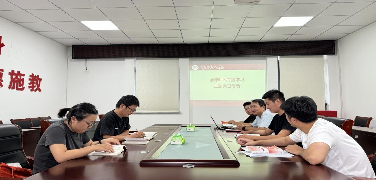 9月11日下午,必赢线路检测3003no1习近平新时代中国特色社会主义思想概论教研室党支部在逸夫综合楼5508会议室开展了师德师风专题学习主题党日活动。会议由该支部书记吴兆云主持,全体党员参加会议。