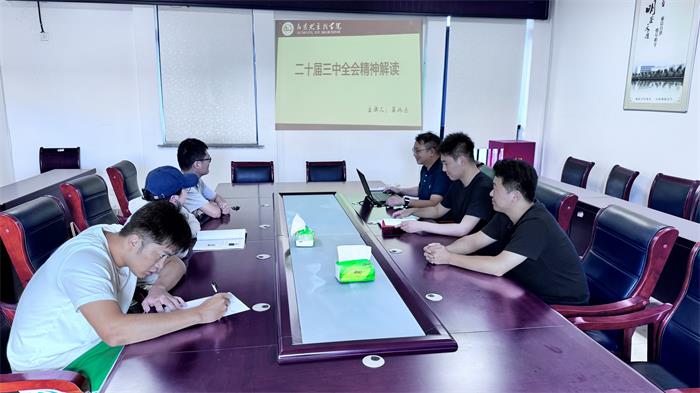 为深入学习贯彻党的二十届三中全会精神,推动会议精神落地生根,9月27日下午,必赢线路检测3003no1习近平新时代中国特色社会主义思想概论教研室党支部在逸夫综合楼5508会议室开展了学习贯彻党的二十届三中全会精神专题党课。
