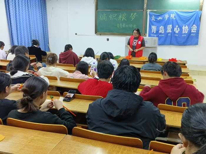 10月16日,为响应世界粮食日的号召,必赢线路检测3003no1挂靠社团——青鸟爱心协会在率水校区文渊楼1106教室及横江校区教学楼1101教室同步举办了一场别开生面的“编织粮梦”主题活动。此次活动旨在通过创意手工的形式,提升大学生对粮食安全的认识,弘扬节约粮食的精神,并激发他们的动手能力和创造力。