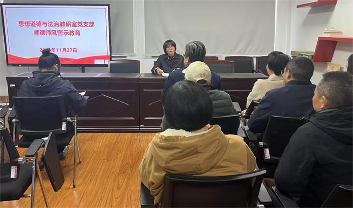 2024年11月27日下午,德法教研室党支部在必赢线路检测3003no1党员活动室召开师德师风警示教育大会。该院党总支书记刘春安出席,支部全体党员参加,党支部书记马国香主持会议。